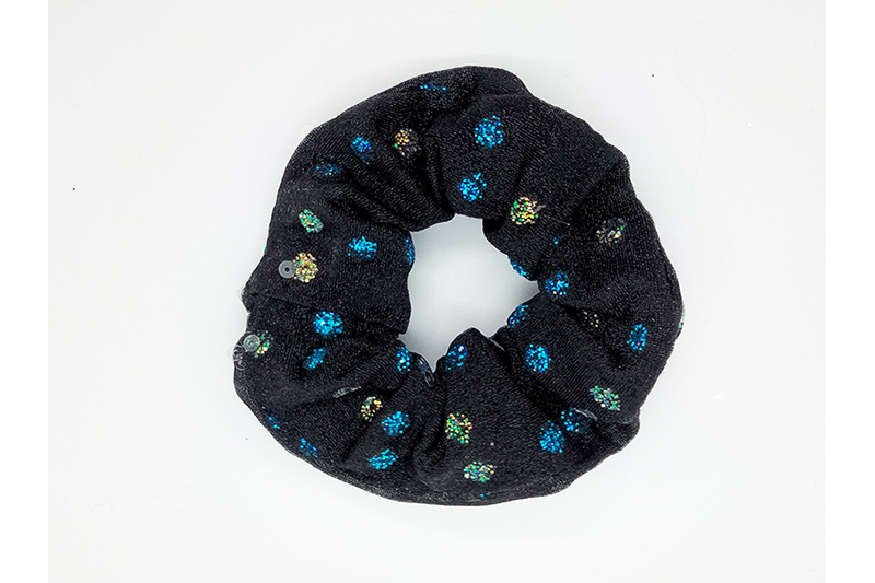 Chouchou élastiqué pour cheveux en lycra noir pailleté multicolore, entièrement réalisé à la main. Diamètre : environ 8 cm. Indémodable !
