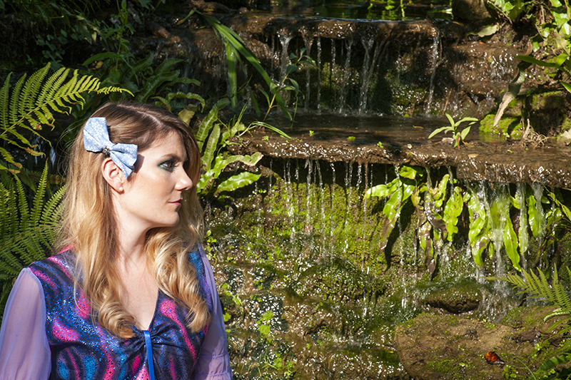 Adorable noeud pour les cheveux Reine des Neiges en coton oeko-tex imprimé flocons, orné en son centre d’une breloque argentée en forme de flocon de neige : idéal pour les fans de la Reine des Neiges ! Monté sur peigne clip.