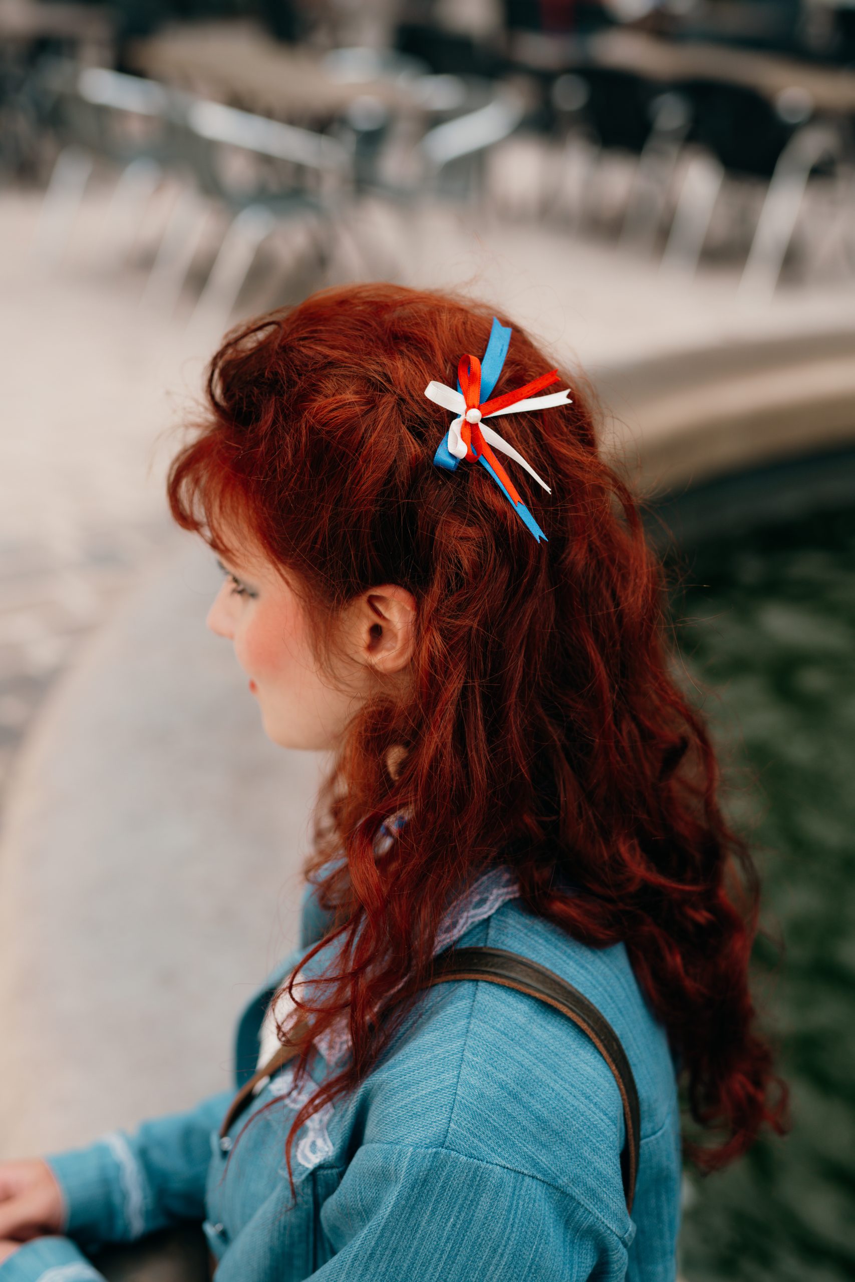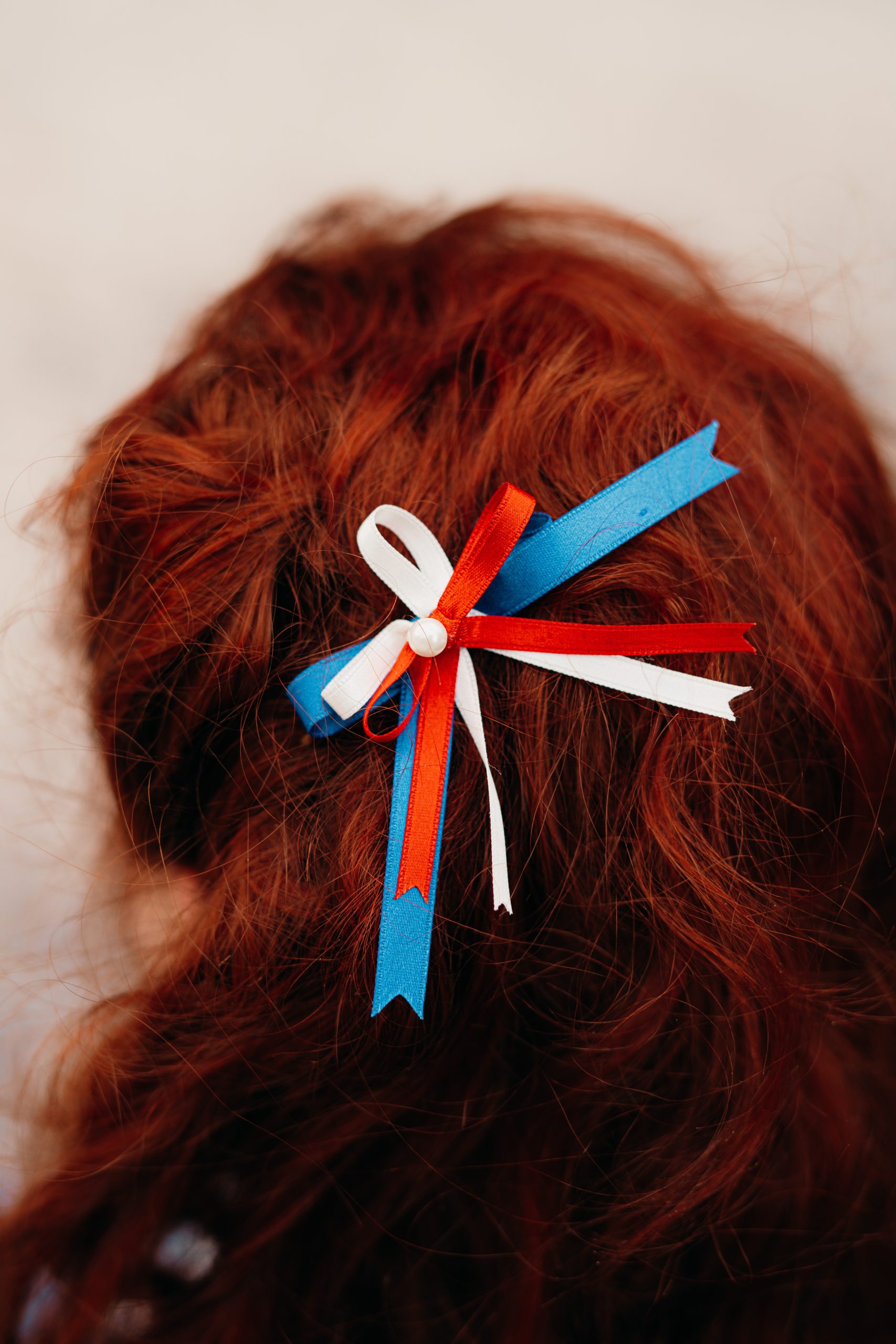 Noeud tricolore pour les cheveux en ruban bleu, blanc, rouge Made in France