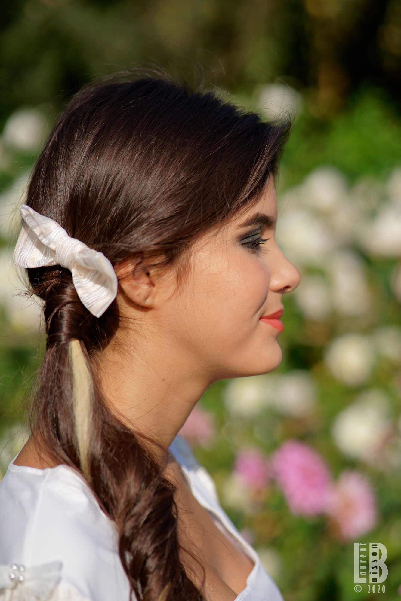 Accessoire cheveux en forme de noeud pour les cheveux en tulle brodé ivoire Rose Bertin