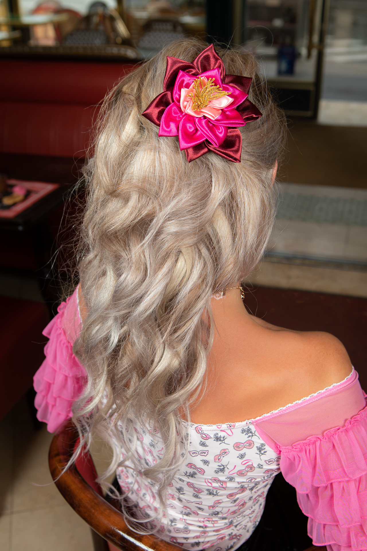 Cet accessoire pour cheveux Nénuphar Haute Couture de couleur rose est réalisé par notre styliste dans notre atelier Chérie et Dandy près de Compiègne dans les Hauts-de-France.