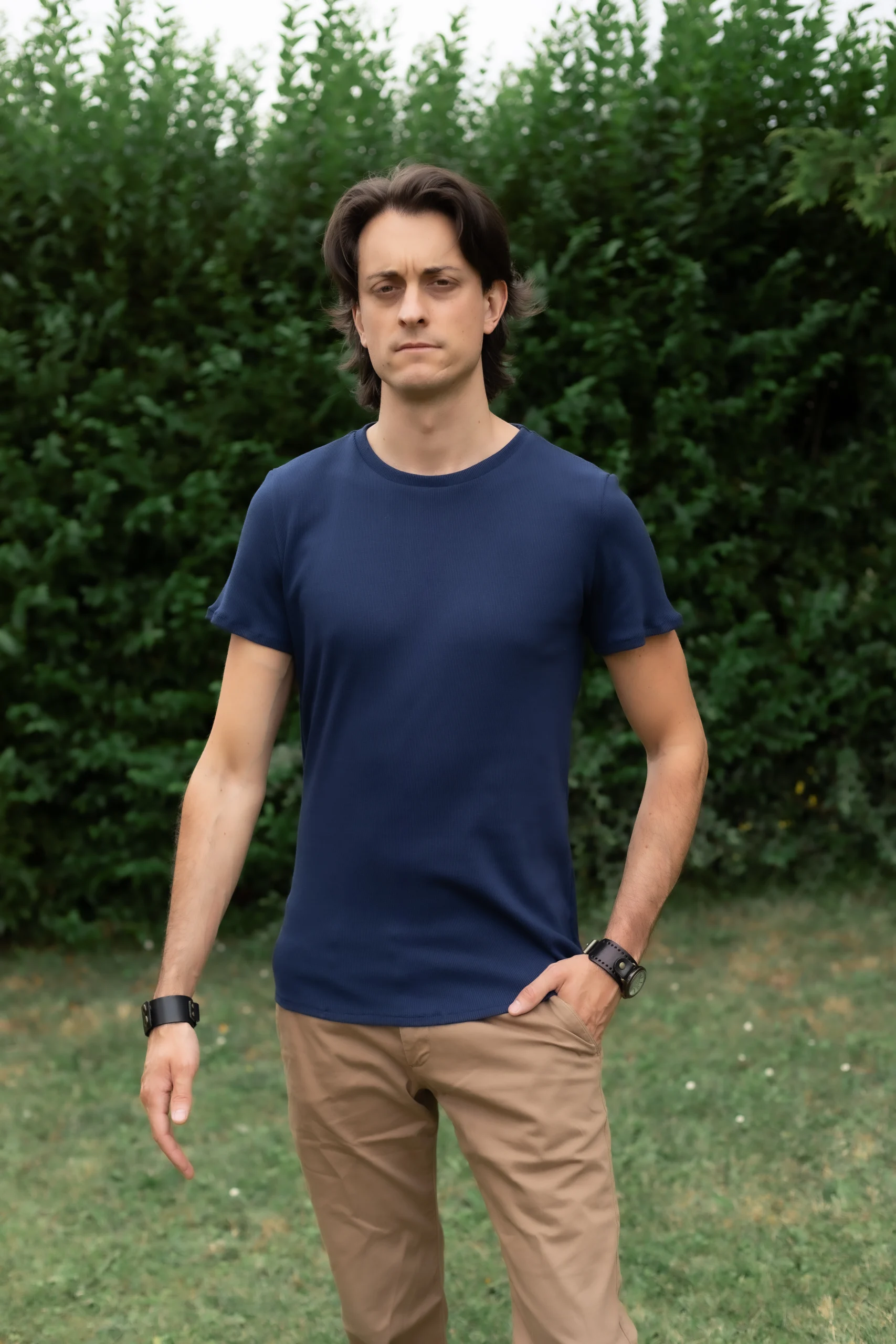 Tee-shirt Made in France pour homme en jersey coton côtelé bleu marine Alexandre
