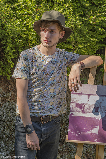 Tee-shirt pour homme de couleur jaune vert imprimé art abstrait Made in France