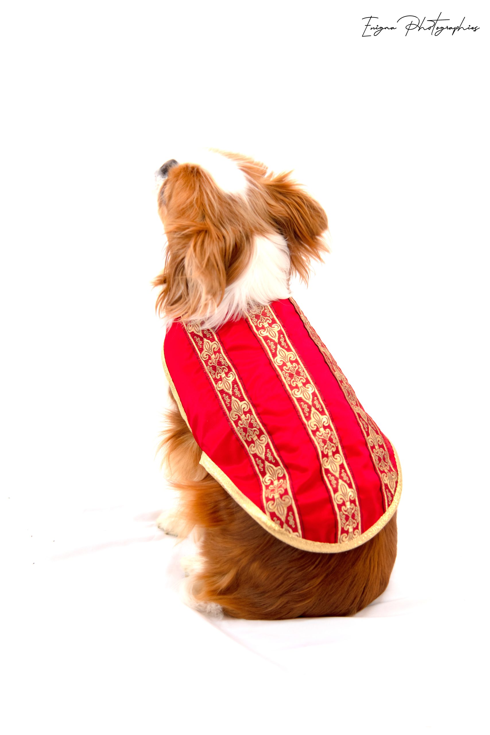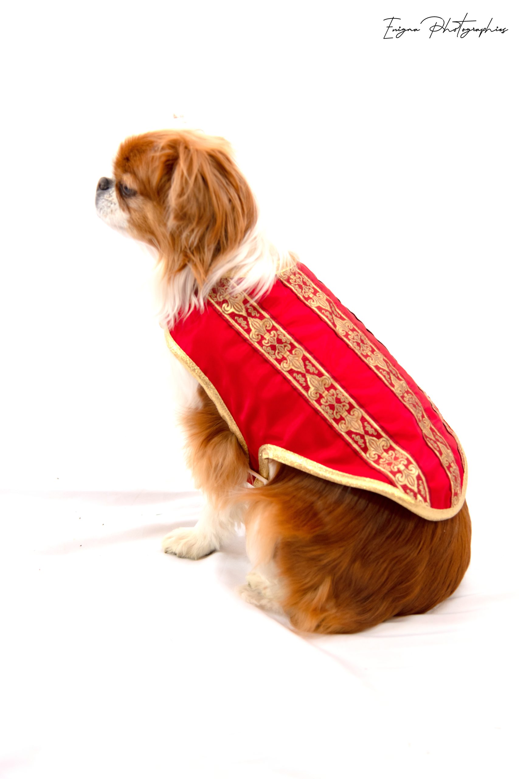 Offer your companion royal luxury! Discover our lovely Athénaïs de Montespan red taffeta Dog Coat. It’s made of sumptuous red taffeta. Gold braids with fleur-de-lys motifs enhance it. Each piece is handmade. It’s a unique Made in France creation.