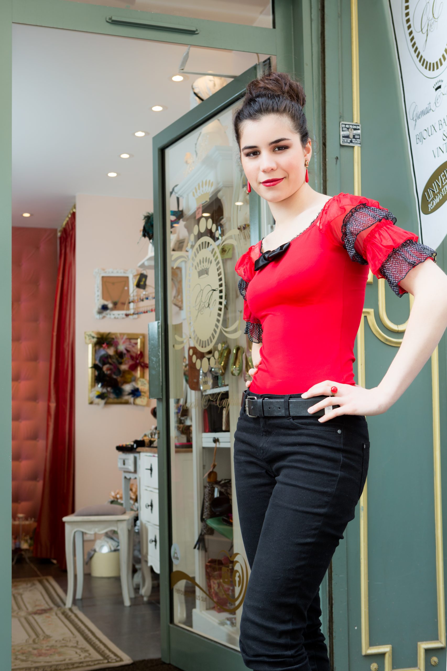Our famous Marie-Antoinette-inspired top in a bold red and black version !