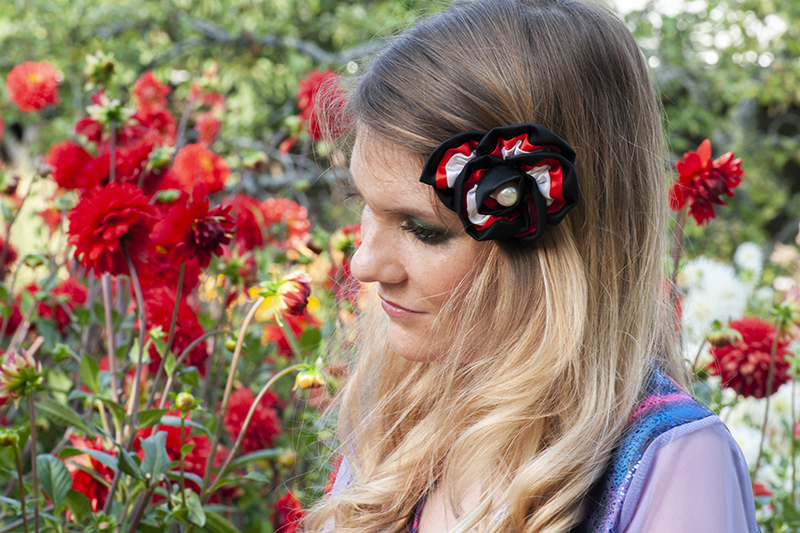 Tricolour Haute Couture flower hair accessory Red Queen’s Rose