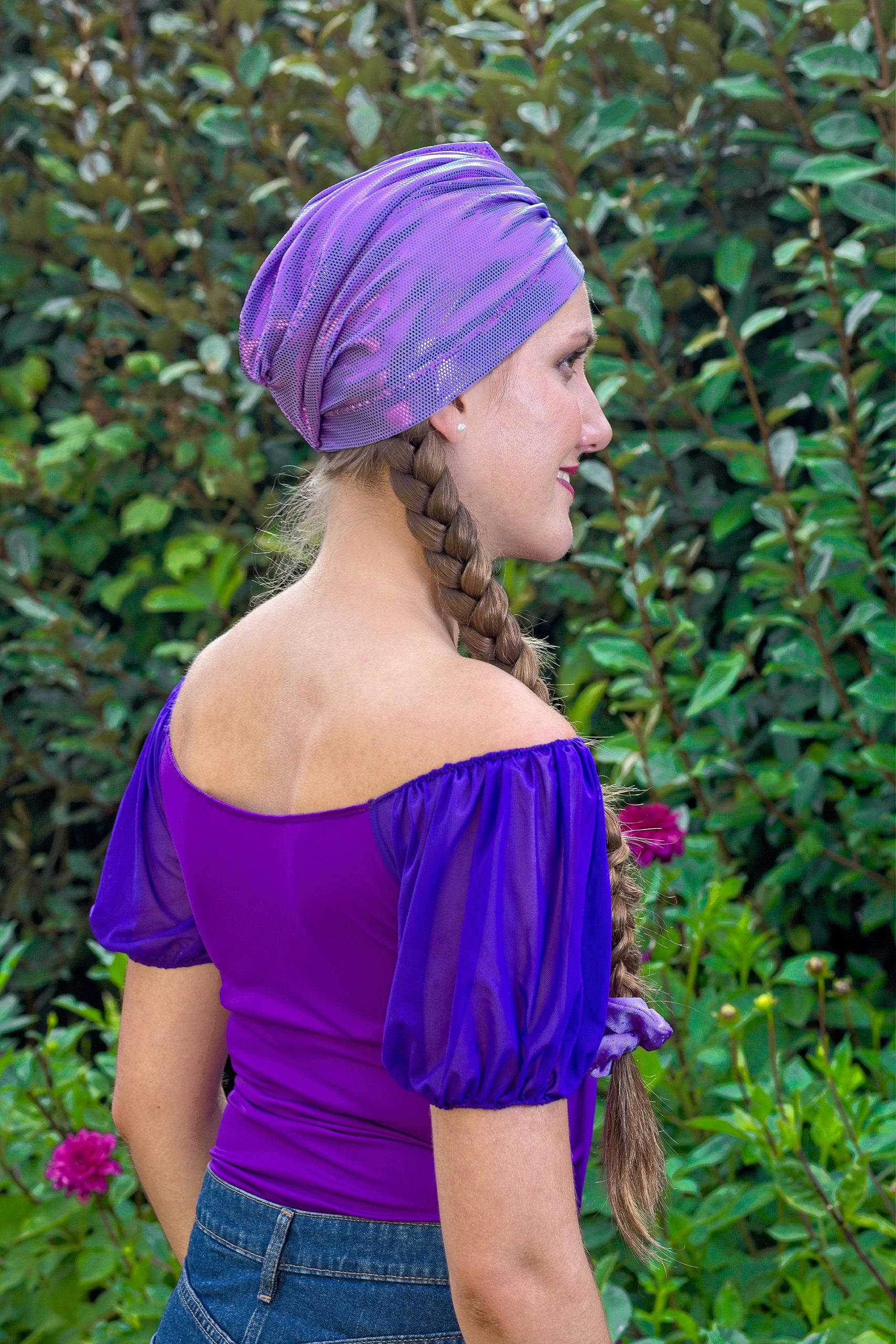 Woman’s Made in France turban in plain mauve lamé lycra Glam Chic