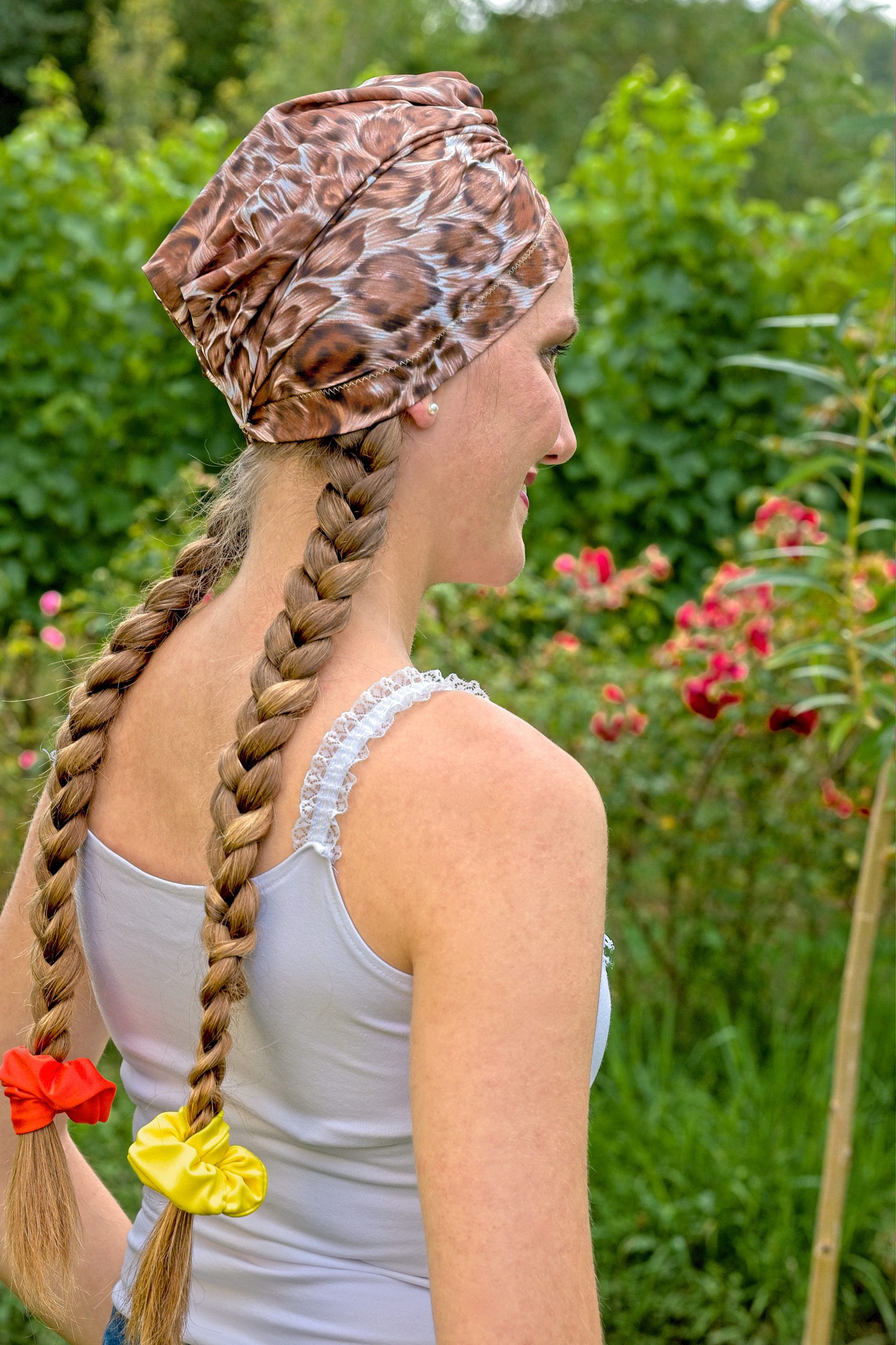 This pretty panther printed women’s turban will be the perfect ally for all women losing their hair after chemo ! Its timeless print will give you style every day so you can stay looking good despite cancer. Entirely made in France, our Feline turban can also be worn as a simple fashion accessory by healthy people to give a vintage touch to your outfit.
